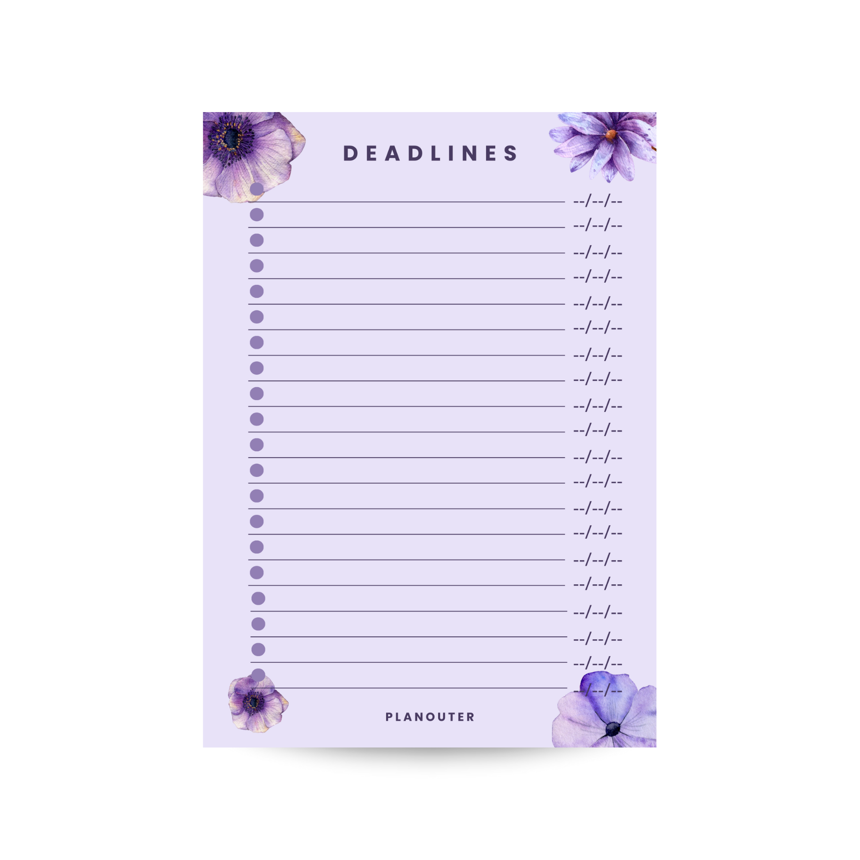 Deadlines Notepad - Purple Flower