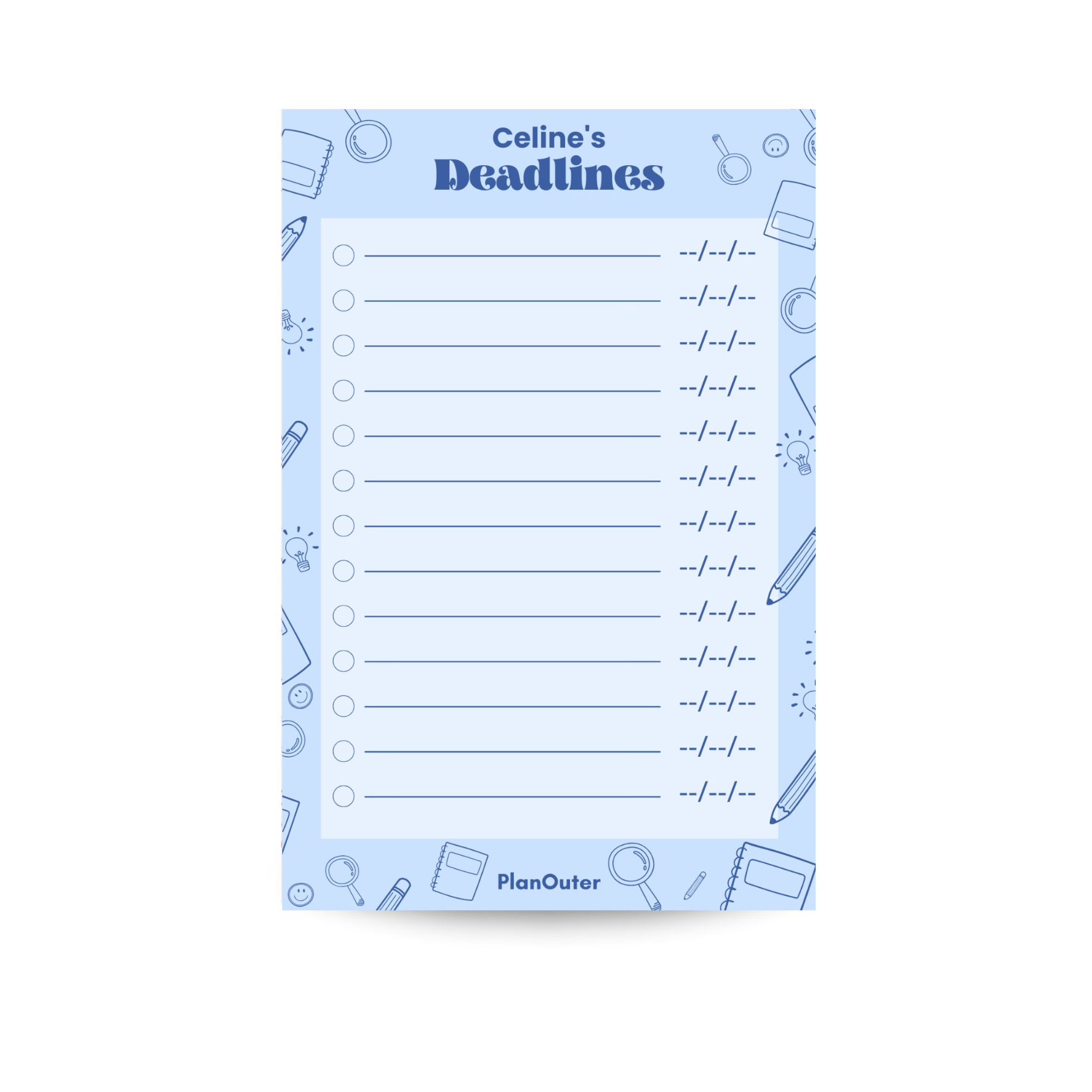 Deadlines Notepad - Student Blue